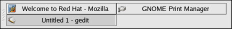Next to the Workspace Switcher is the Taskbar. The Taskbar is an applet which shows you the titles of running applications on any one virtual desktop. This is very helpful if you decide to minimize an application as it seems to disappear from the desktop. Once it disappears, you can bring it back by clicking on its title in the Taskbar.